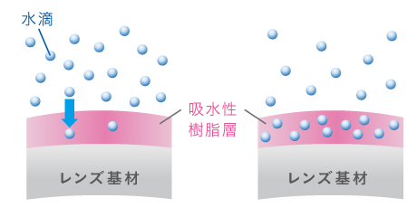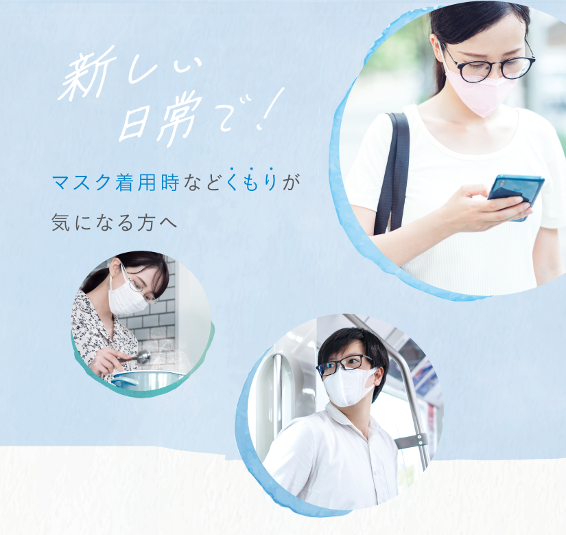 特に、冬場のマスクなど着用時や、電車の乗降どきにメガネレンズの曇りは煩わしい 日常生活に対応した曇りにくいメガネレンズ防曇コートはレンズの表面にコーティングすることで、寒暖差どきにメガネレンズが曇ることを最小限にできます。