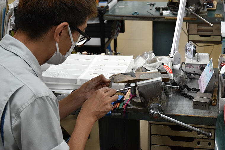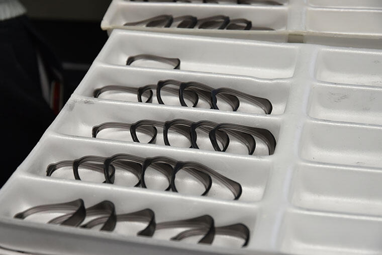 なにしろ眼鏡枠製造には約200もの工程をこなしているというから、その中でいくつかピックアップして紹介しよう。
