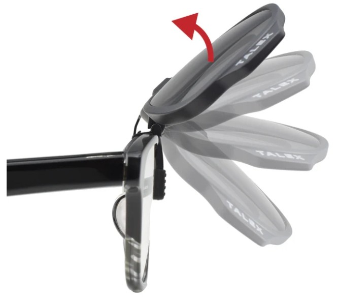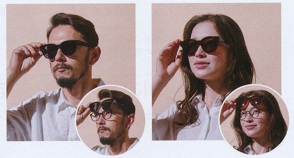 普段、眼鏡を掛けていない方も、状況や天候に合せて瞬時に偏光サングラスとして見ることができたり、瞬時にフロント部をワンタッチで跳ね上げることで素通しで見ることができます。