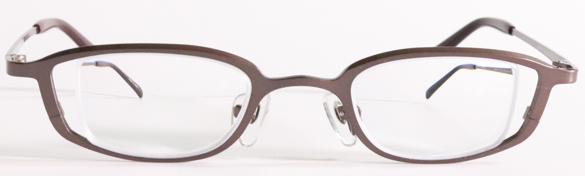 このフレーム(強度ウスカル)は、強度近視の方のために、設計され制作したフレームです。一般の眼鏡枠は軽度の近視から老眼、遠視、乱視といった何方にも適用できるようにに制作されています。