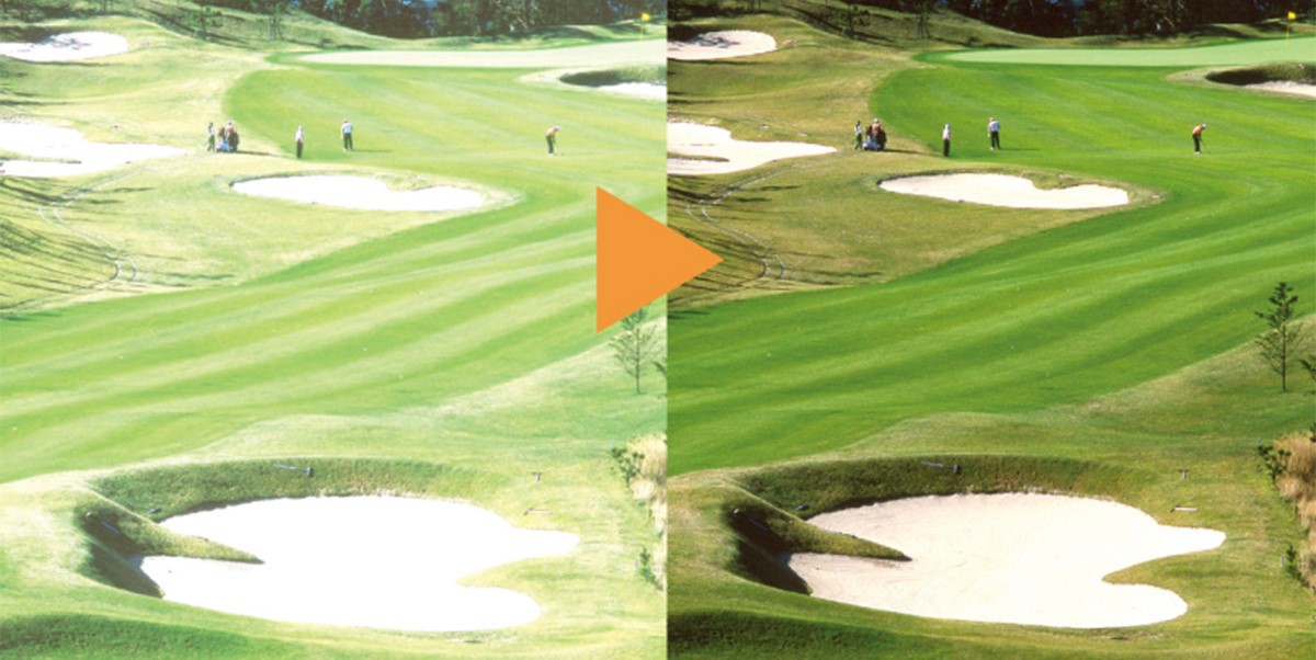 黄色波長を抑制することで緑、赤の波長域の認識レベルを向上させ、コントラストUP、明るくクリアな視界を確保できます。