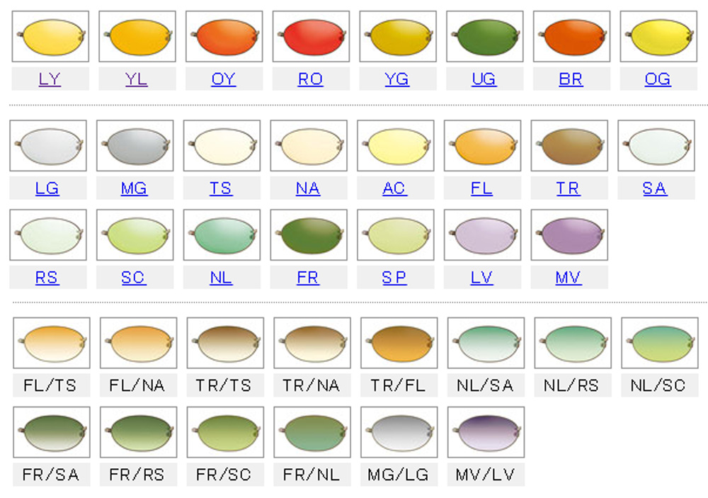 - 1.1.9 ⑨特殊レンズカラー:調光レンズカラー(紫外線または可視光線によってカラーの濃度が変わります)
