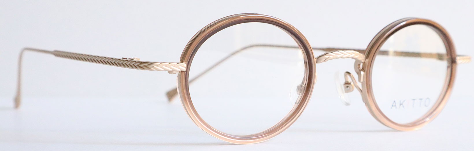 AKITTOのアイウェアフレームは、すべてMade in Japan純日本製です。0.1㎜単位で調整される絶妙な曲線美ライン、華やぎを添えるディテール、そしてメイキャップ化粧品(アイカラー)のように繊細なカラーリングや質感は、高度な職人技術でこそ叶うものなのです。