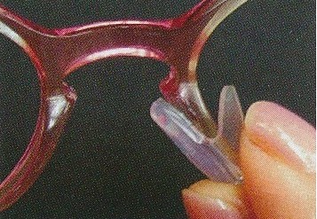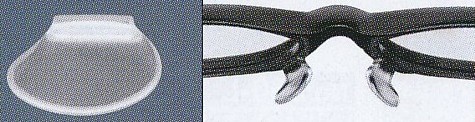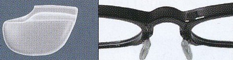 メガネフレームやサングラスの鼻幅と、お一人お一人のお鼻の形に合せて取り付ける鼻盛りです。見栄えを出来る限りスマートに、自然に見えるように製作できます。