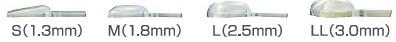 ●01 Sサイズ1.3mm ●02 Mサイズ1.8mm ●03 Lサイズ2.5mm ●04 LLサイズ3.0mm