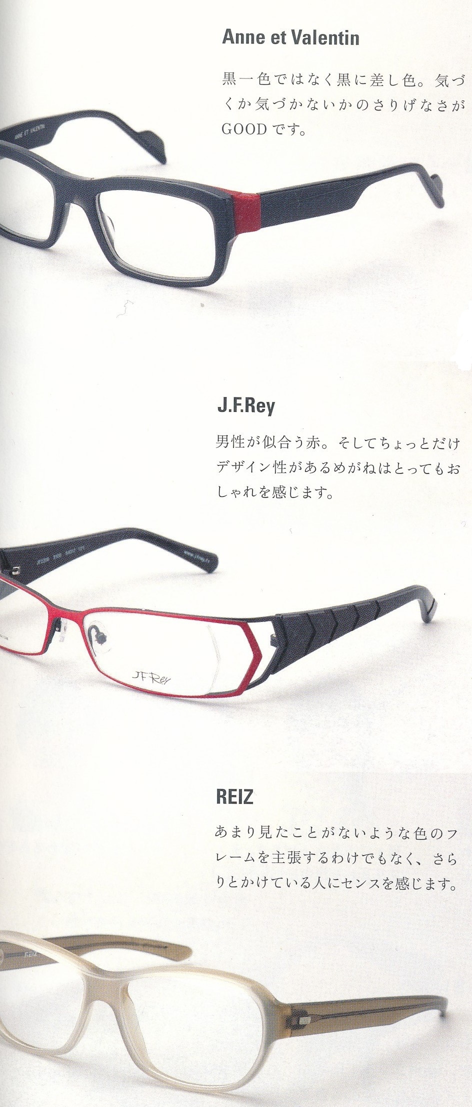 メガネはとくに、さりげないデザインではこだわったメガネと認識されないので、色や形に特徴を持たした方が良いのではないでしょうか。