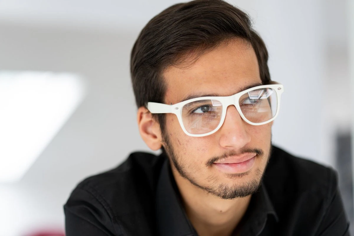 白いフレームのメガネは、クリーンでモダンな印象を与えます。白フレームのメガネは、「清潔感があって爽やか」と感じてもらえるかも知れません。