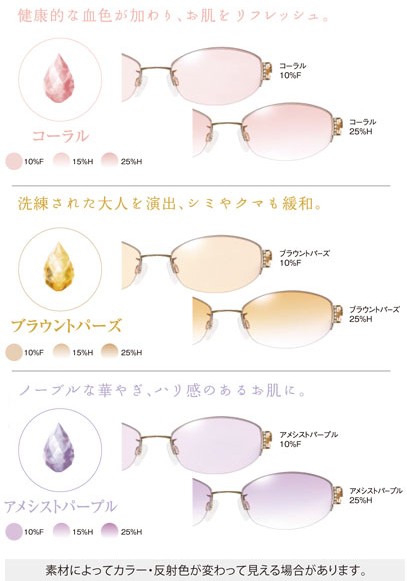 ※見た目の印象に関してのカラーレンズによるメーキャップ効果であり、個人差があります。パーソナルカラー理論を基に開発した7色から、お客様を若々しく輝かせるカラーコートをお選びいただけます。