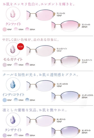 メガネに色を入れる目的には、レンズのカラーを濃くすることで「眩しさをとる」、レンズのカラーを薄くいれることで「トータルファッションとしてのおしゃれを楽しむ」、つまり、最近のメガネをファッションとして取り入れられ方にとっては、度なしで薄いカラーを入れることで、個性の演出(ダテメガネ)にも一役担っているのです。その他の目に対する保護を目的とする「紫外線カット」「青色光カット」効果もあります。