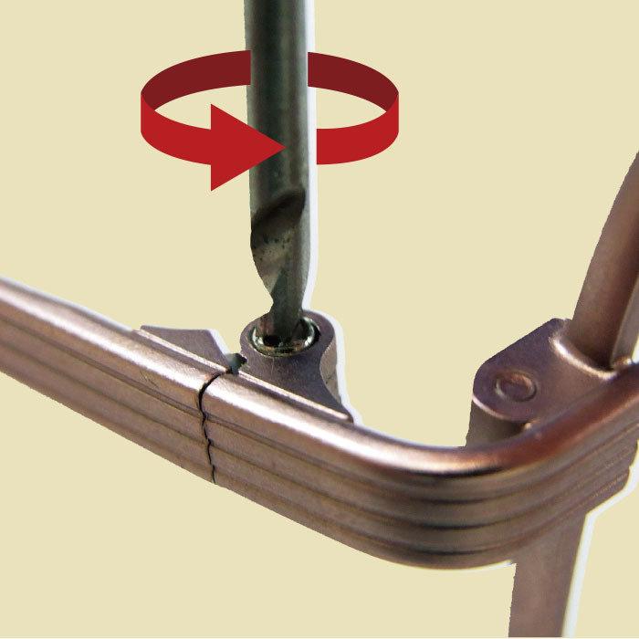 この部分に現在使用されているネジをハイブリッドネジに取り替えることで、今まで何度も眼鏡店やご自身で締めて頂いていた煩わしさが解消されます。