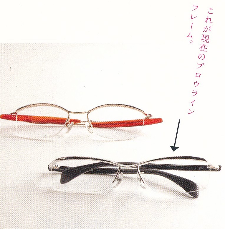 90年代後半にブロウラインフレームが発売されて、おしゃれな人はみんなかけるほど人気がありまさいた。(写真上)