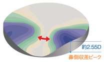 収差については、人間工学に基づき遠用EPの左右30ミリエリアまでの非点収差を低減し、明視域を10%広く設計。これにより、装用時の第一印象が格段に向上しました。