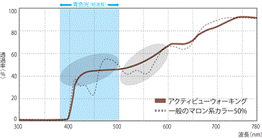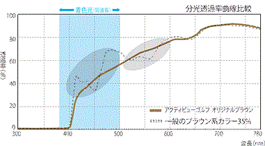 まぶしさの原因となる青色光線をカットし、中間波長帯光線(緑色~黄色光線)を強調させることでコントラストを高めます。